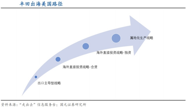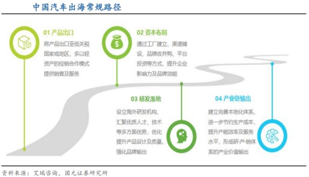 产品出口,培育市场,到布局产业链,逐步提升整车及其零部件在海外生产的本土化率,形成规模,是大多数中国汽车企业进行海外市场拓展和开发的发展路径。近年来越来越多的汽车及零部件企业规划或已经在海外投资建厂,降低供应链风险与成本的同时规避部分贸易壁垒。