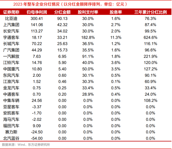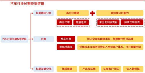 国务院于4月12日印发《关于加强监管防范风险推动资本市场高质量发展的若干意见》,明确提出“建立培育长期投资的市场生态,完善适配长期投资的基础制度”“强化上市公司现金分红监管”“推动上市公司提升投资价值”等工作任务,鼓励和引导中长期资金入市,培育长期投资、价值投资的市场生态。汽车工业是中国的支柱产业之一,新能源汽车产业是中国战略性新兴产业的代表,并成为引领中国经济向高质量发展迈进的重要引擎;随着全球及中国新能源汽车产业蓬勃发展,近年来汽车行业涌现出一批在全球范围内具备核心竞争力的整车公司。从分红角度,具有长期稳定分红、能够稳定回报股东的上市公司或将具备长远市场发展潜力,而长期稳定分红不仅需要上市公司具备较高的分红意愿(分红率较高、股息率较高),更需要上市公司具备较强的持续分红能力,即具有充裕的未分配利润,同时具备较高的正股权自由现金流,即能够持续形成分配给股东的正现金流。