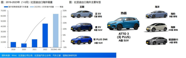 出色产品竞争力使其快速取得优异的销售成绩。在新加坡,ATTO3是最受欢迎的新能源品牌之一;据比亚迪引述泰国autolife官网数据,在泰国2023年Q1比亚迪上牌量占电动汽车的37.5%;在以色列,ATTO3已连续5个月成为单车型销售冠军。
