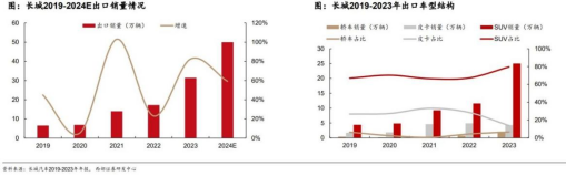 4、长城汽车:2023年出口销量31万辆,同比82%,SUV占比80%