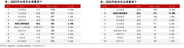 目前,集团的客户遍布全球130多个国家,并在30多个国家开展生产制造业务。2023年,Stellantis集团在全球范围内共销售汽车592万辆,销量排名第五,仅次于丰田集团、大众集团、通用汽车和现代汽车集团;在欧洲共销售汽车213万辆,销量排名第二。2023年上半年,Stellantis集团实现净营收984亿欧元、净利润109亿欧元,并以其14.4%的调整后经营利润率持续成为全球汽车行业利润率最高的企业之一。