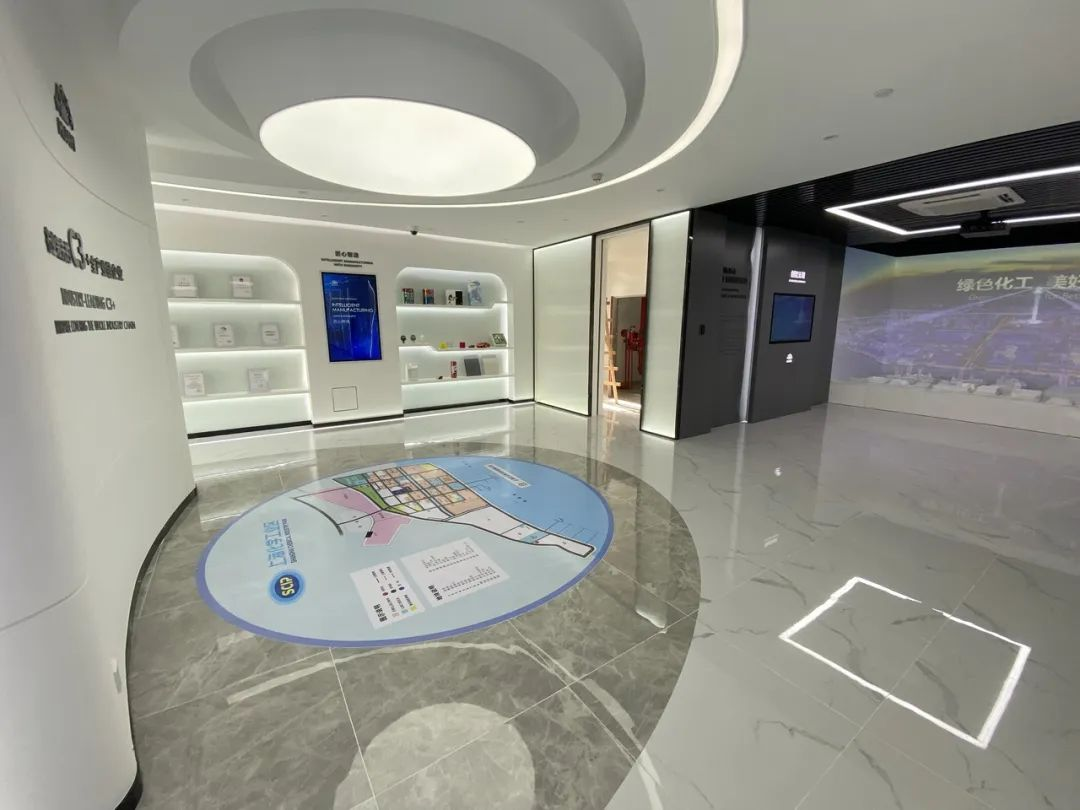 数智展厅通过“形象文化、创新发展、未来展望”三大展区和“形象大屏、企业文化、载誉前行、匠心智造、智能引擎、创制无垠、引领未来、宏图演绎”九大板块展示了新材料公司发展历程以及在数字化转型及灯塔工厂创建过程中积累的数字化应用案例。其中,沉浸式数字沙盘让参观者仿佛身临其境,通过灯光、音效及上下起伏的3D打印的3维立体效果将整个数智化展厅的演绎过程推向高潮。