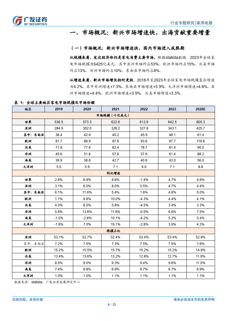 中长期看,国内家电市场进入平稳增长阶段,出海将贡献重要增量。海外市场中,欧美日等成熟市场规模大,也是目前中国企业出口的主要国家:但东南亚、中东非等新兴市场出口体量正在快速增长,中国企业已有布局未来将成为出海的重要增长来源。