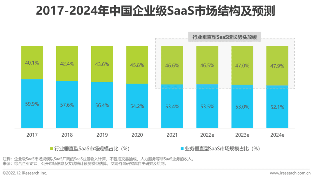 2021年业务垂直型占比为53.4%,行业垂直型增长势头放缓