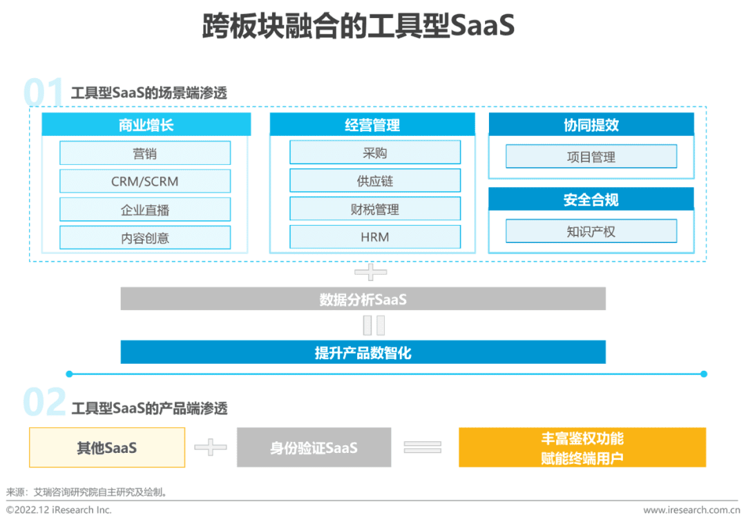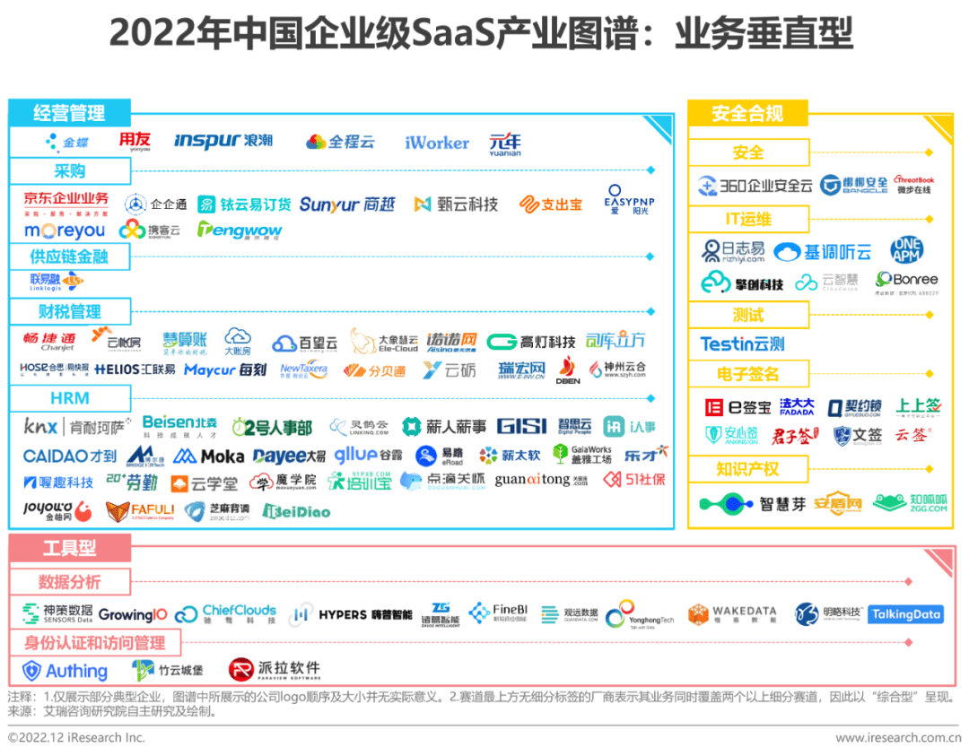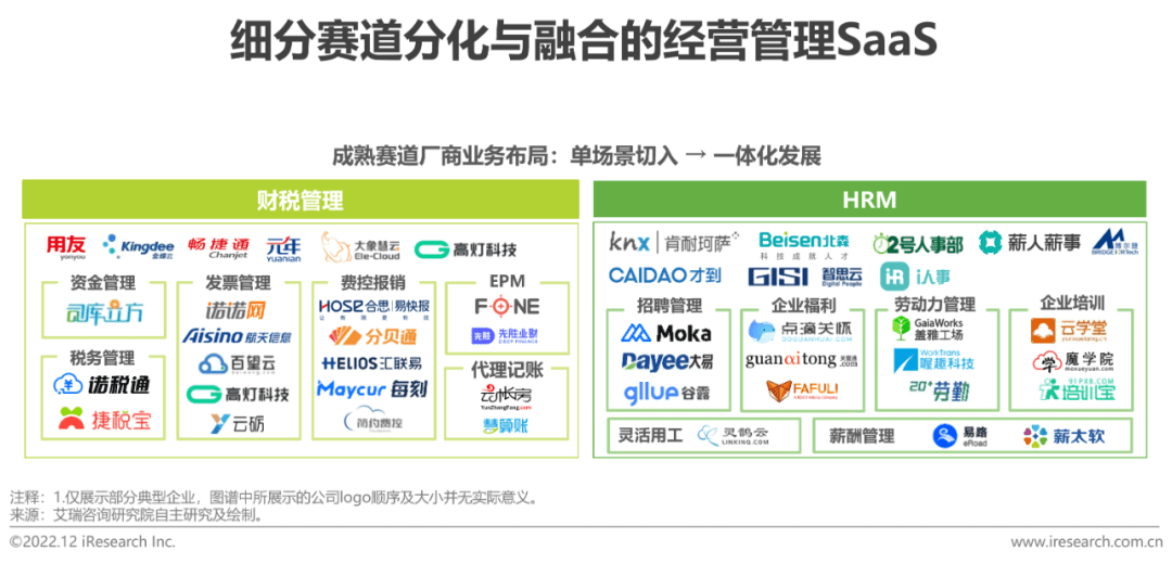 财税与HRM赛道逐渐成熟,厂商由点及面加速一体化布局;工具型SaaS横向渗透并融合特定业务场景来发挥自身价值