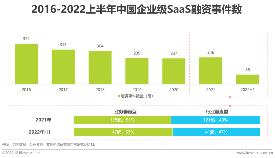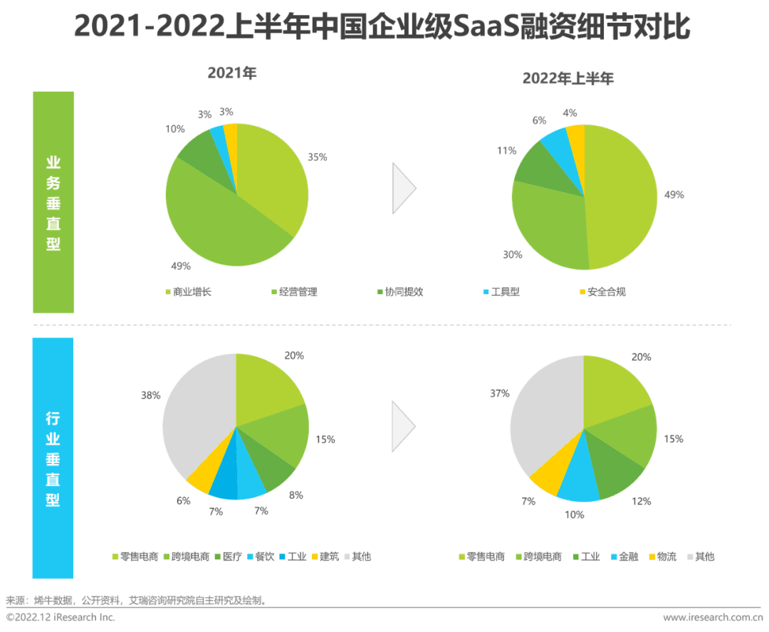 (1) The proportion of business vertical SaaS investment and industry vertical saas investment remains stable, accounting for about 50% respectively;