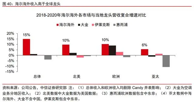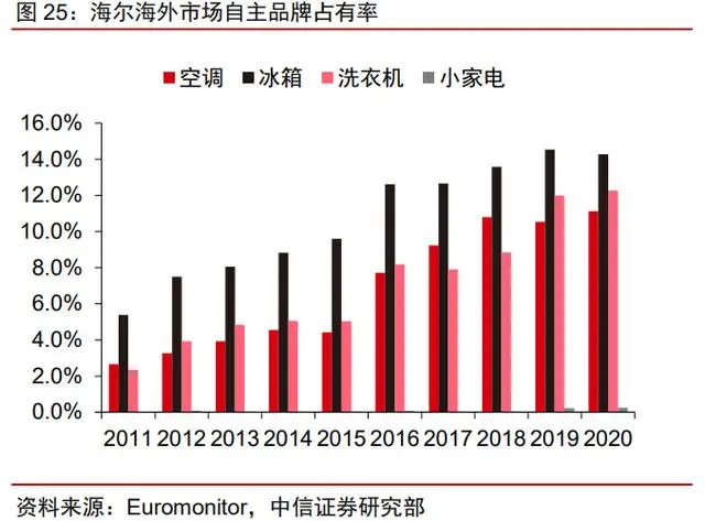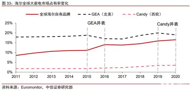 国内企业中,海尔通过收购快速提高市场份额,并获取相应产能、品牌、技术、渠道等资源,实现全球自主品牌扩张,是表现最为优异的白电企业之一。