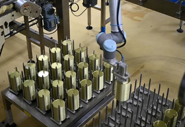 在联合利华天津食品工厂黑灯车间,自动化机械臂正在作业(5月11日摄)。