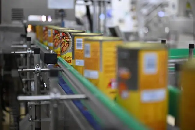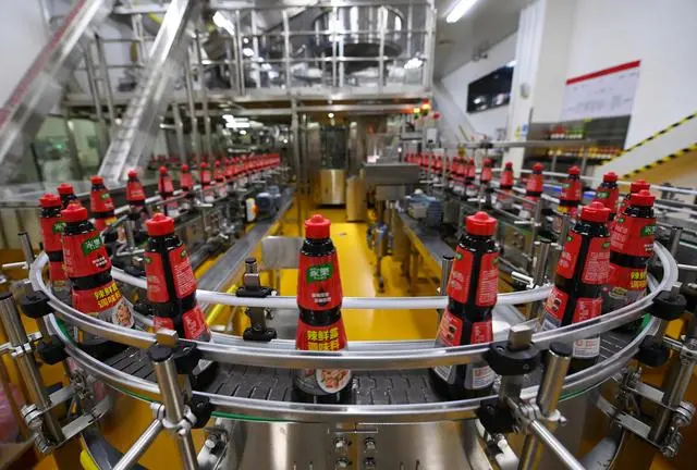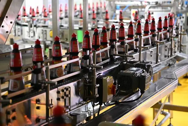 在联合利华天津食品工厂黑灯车间,调味料产品在智能生产线上传输(5月11日摄)。
