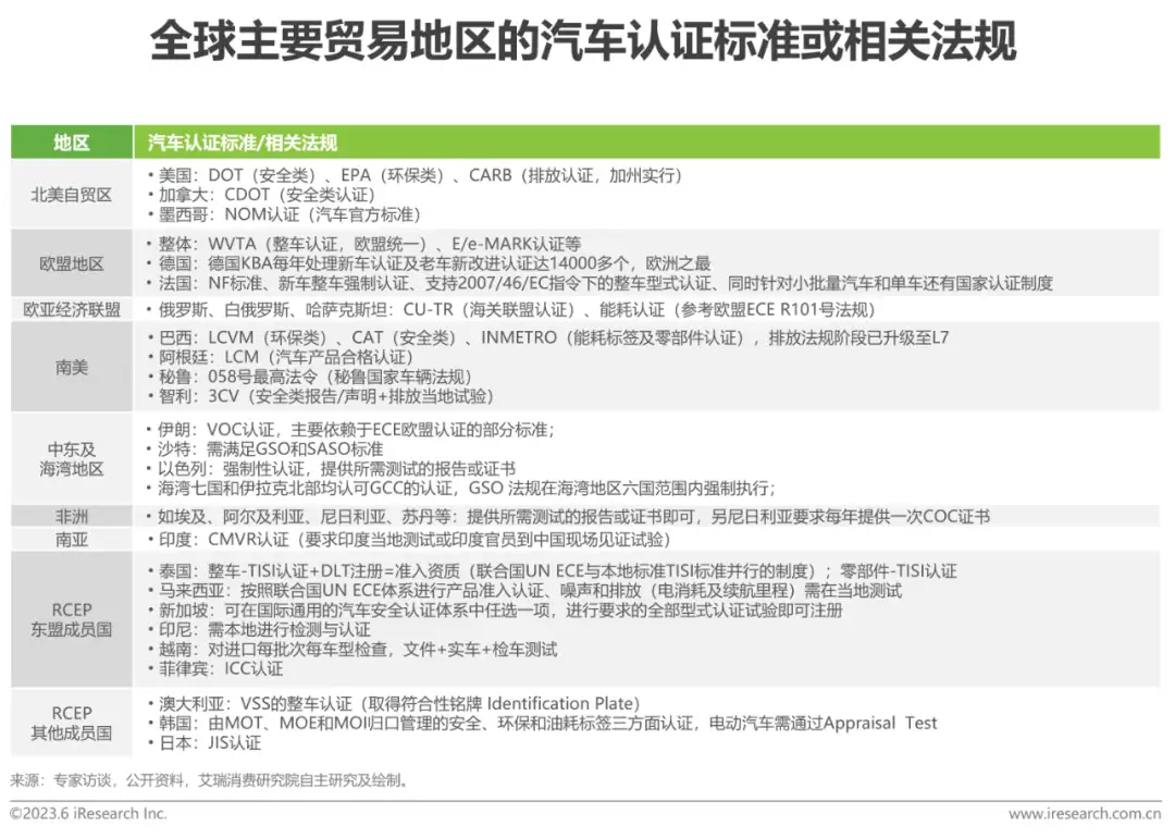 各贸易地区的汽车认证标准不一,增加车企出海难度