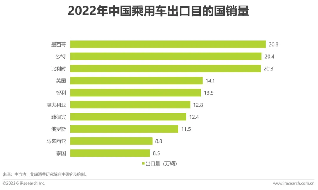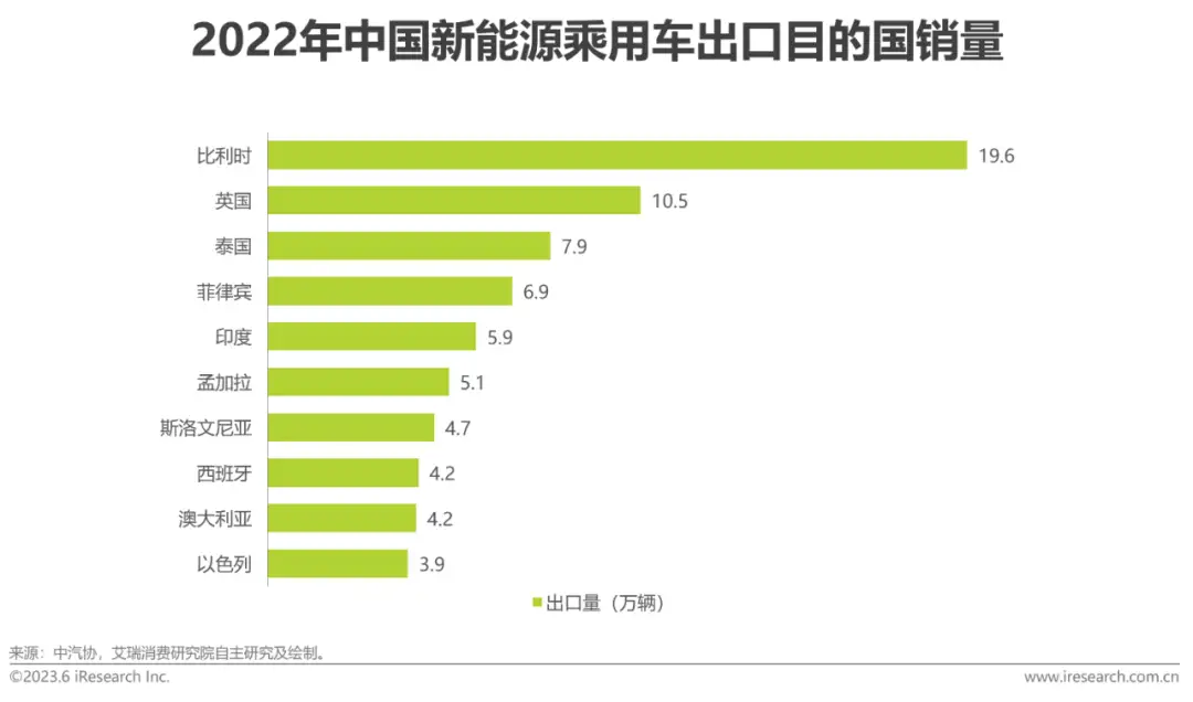 中国乘用车出口目的地特点新能源乘用车主要出口目的地集中在西欧和东南亚国家我国新能源乘用车出口目的国中,出口比利时的数量最高,达19.6万辆,这与比利时拥有全球最大的汽车集散港有关,能够促进中国汽车更快与欧洲腹地联通。此外,英国和泰国、菲律宾等东南亚国家也是新能源乘用车的主要出口目的地,出口量较高。对比乘用车和新能源乘用车出口数据可以发现,墨西哥、沙特、俄罗斯等国仍是以进口我国的燃油车等传统能源乘用车为主,这主要取决于当地的经济水平、气候、能源矿藏储备以及对环保的政策和态度等。数字化转型网www.szhzxw.cn