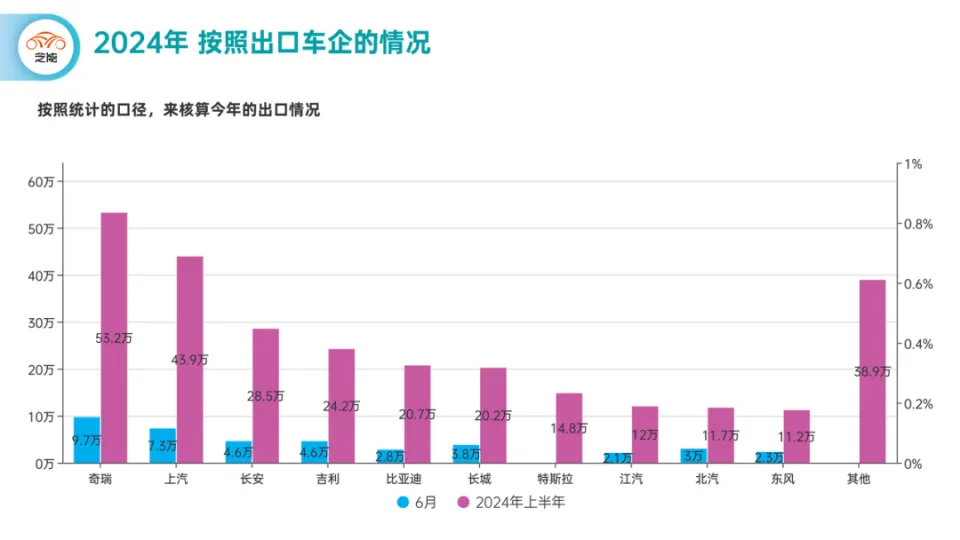 ● 奇瑞 以53.2万台的上半年出口量,超越上汽集团问鼎榜首,其海外市场的拓展能力不容小觑;