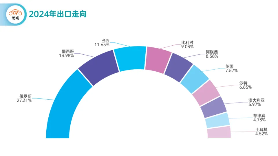 在分析中国新能源汽车出口的地理布局时,俄罗斯、墨西哥与巴西无疑占据最显著的份额。2023年中国向欧盟出口了48万辆纯电动乘用车,这一数字占中国电动汽车总出口量的45.1%。此外,澳大利亚、东南亚以及巴西等地区也成为了中国新能源汽车的重要目的地,全球化的市场版图越来越清晰。