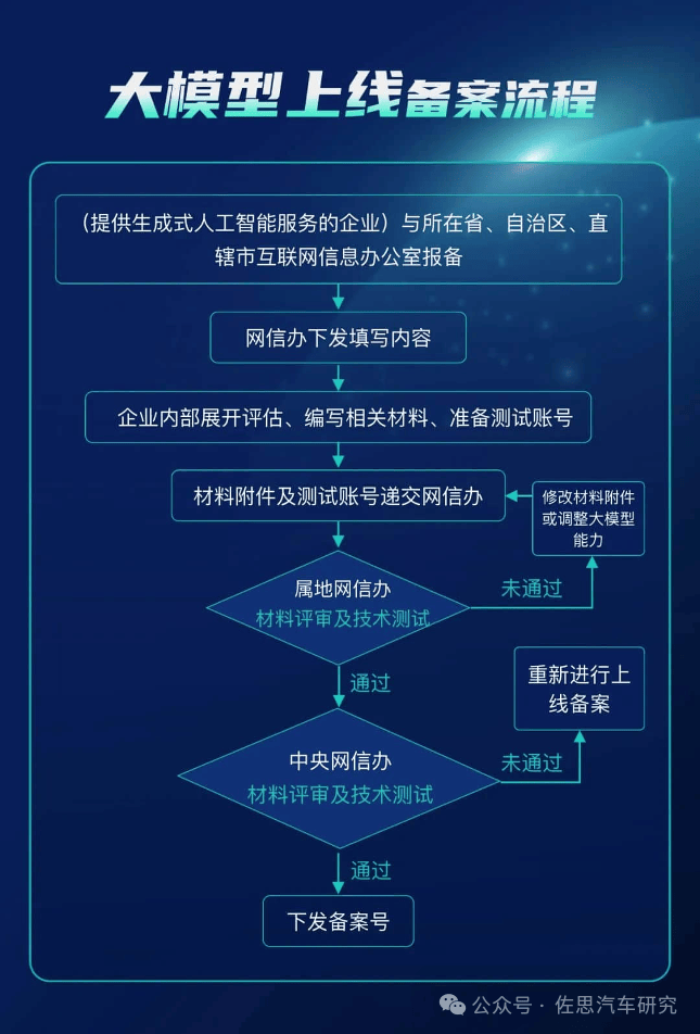 AI上车需要满足国家《生成式人工智能服务管理暂行办法》、《互联网信息服务深度合成管理规定》等监管要求,车企大模型需进入《境内深度合成服务算法备案清单》,具体包括算法备案、安全评估、大模型上线备案等,境内深度合成技术服务(文本、图片、音频、视频、虚拟现实等)都需要进行算法备案,耗时一般2-4个月。数字化转型网www.szhzxw.cn