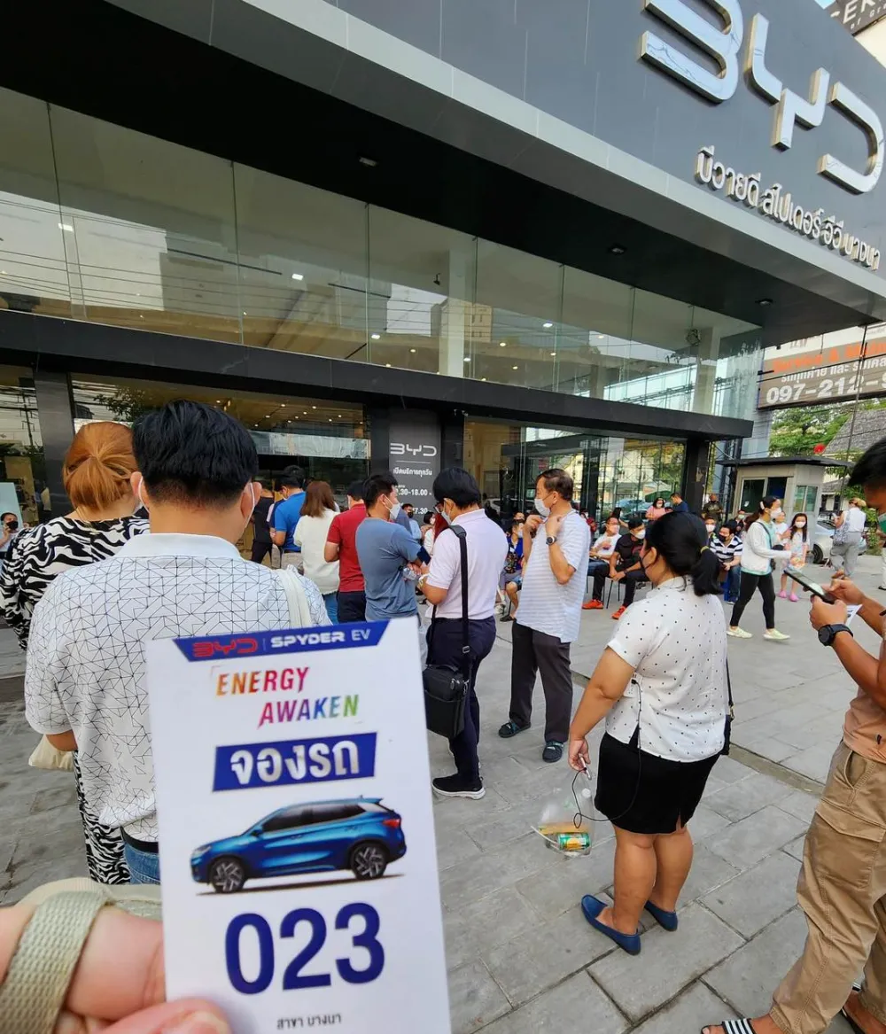 比亚迪ATTO 3新车开卖前夜,吸引了众多消费者彻夜排队订车,掀起“抢购潮”/图源:Blink-Drive