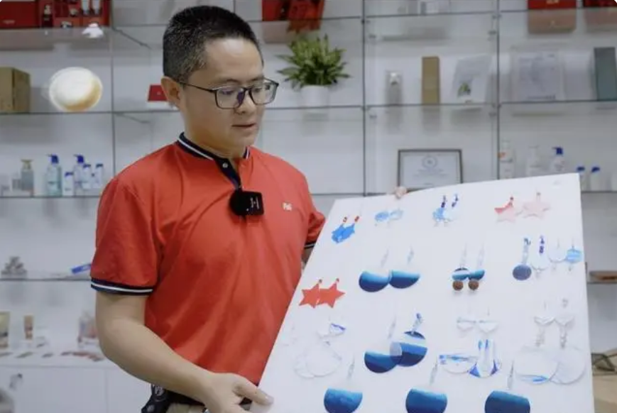 消费者买护肤品的时候,产品和小样都会放在同一个盒子中,里面通常会放一些纸碎,但消费者收到时,产品、小样和纸碎会混在一起,消费者也不好找到小样。如何解决这个问题呢?李鹍发明的“记忆蜂窝”就是在这样的情景下诞生,主产品能够固定在包装上,这款包装也能适用不同形状的产品。