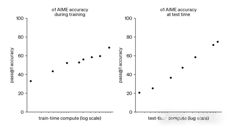经过强化学习(Reinforcement Learning),OpenAI o1在推理能力方面取得了重大进展。研发团队观察到,随着训练时间(强化学习的增加)和思考时间(测试时的计算)的延长,o1模型的表现逐渐提升。这种方法的扩展所面临的挑战与大型语言模型(LLM)的预训练限制截然不同。