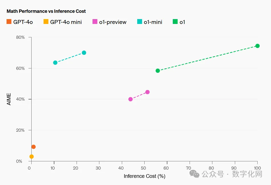 可以看到,在2024年美国数学邀请赛的竞赛题和Codeforces算法竞赛题上,o1预览版解决数学和编程问题的能力,比起GPT-4o,提升了5-6倍。而可怕的是,深橙色的柱形,代表真正的o1,相比于GPT-4o,提升了8-9 倍! 数字化转型网www.szhzxw.cn