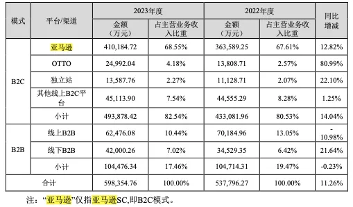 致欧科技旗下三大自有产品品牌在亚马逊德国、法国、英国和意大利等站点”Top Amazon Marketplace Sellers”家居家具品类中排名第一。 亚马逊平台去年给致欧贡献约41亿的收入,总营收占比达到68.55%,同比增长12.82%。2023财年致欧科技实现营收60.74亿元,同比增长11.34%;扣非净利润4.31亿元,同比增长71.78%。数字化转型网www.szhzxw.cn