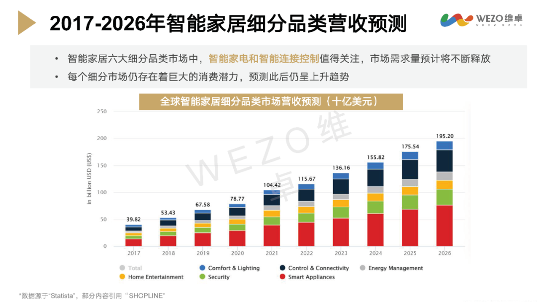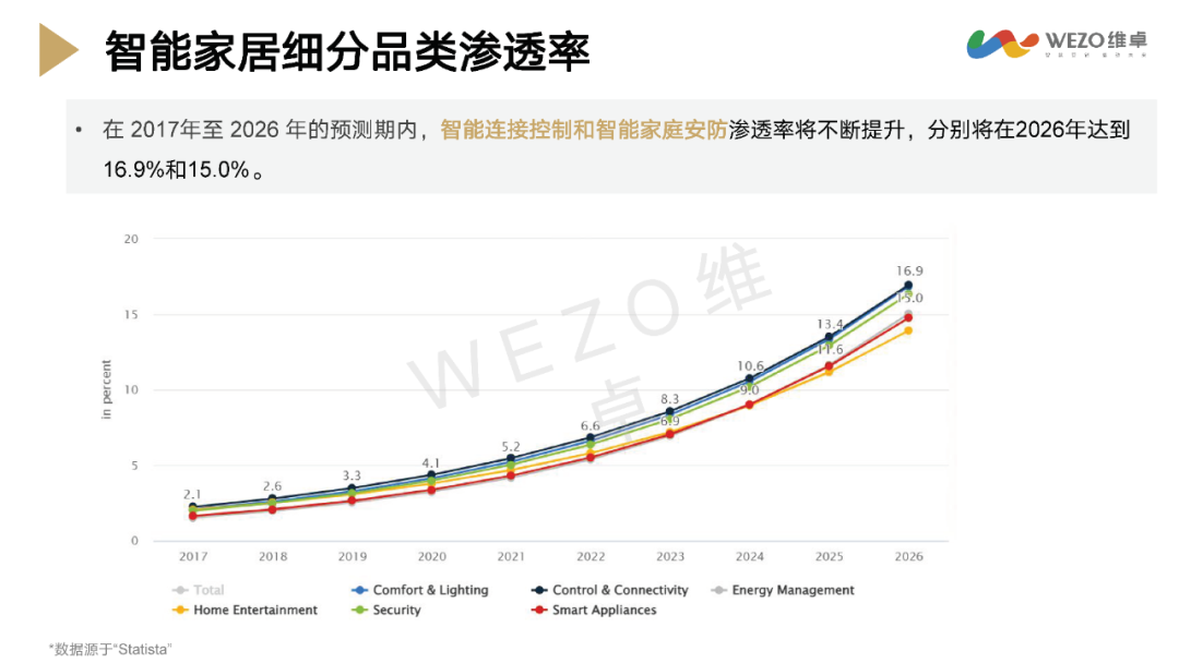 智能家电和智能连接控制品类特别值得关注,预计市场需求量将持续释放。智能连接控制和智能家庭安防的渗透率预计将在2026年分别达到16.9%和15.0%。数字化转型网www.szhzxw.cn