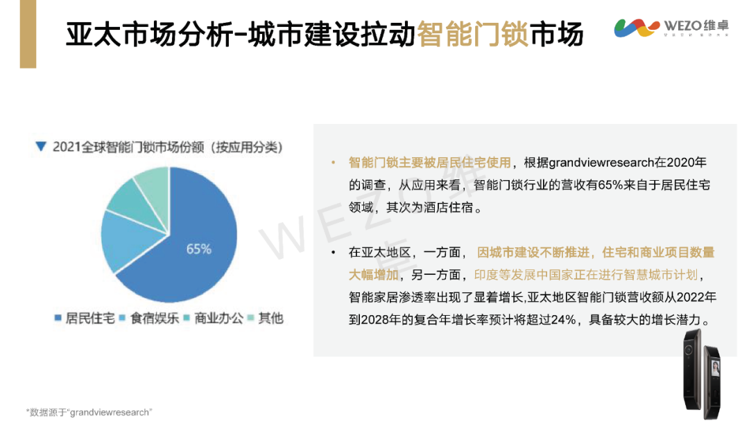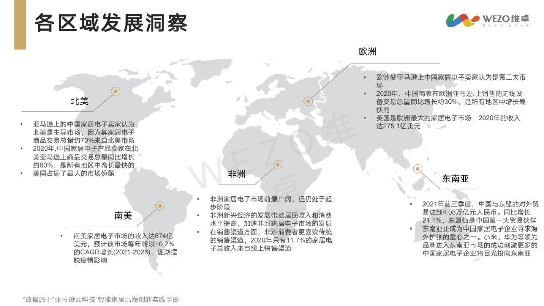 不同地区智能家居市场的发展呈现出不同的特点。例如,北美市场以智能家居安全摄像头的预计销量增加为特点,而亚太市场的智能门锁市场则因城市建设拉动而增长。