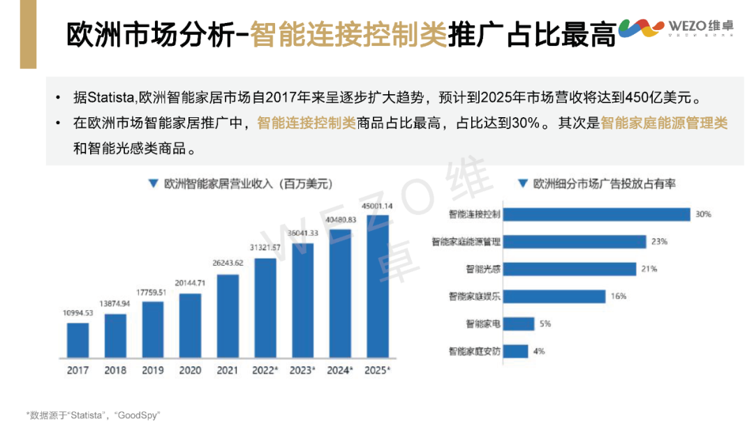 智能家居的主力消费人群是25-34岁的高收入全职人群,男性略多于女性。这些消费者更倾向于使用Facebook和Instagram,且更愿意在网上购物。数字化转型网www.szhzxw.cn