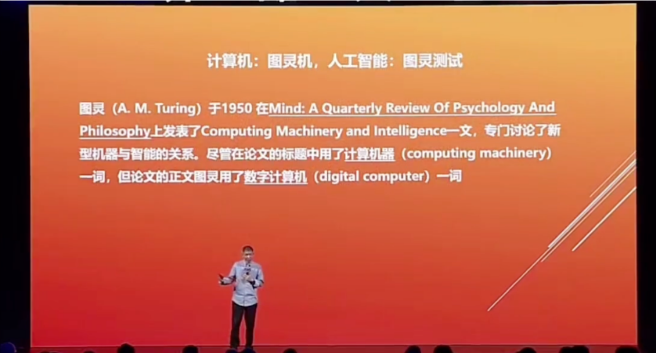 我自己觉得这是一个很长过去的一个开始,如果你要追溯关于机器智能的事情,可能可以追到几百年以前。在图灵这篇文章里边,他谈了一些很有意思的事情。这篇文章50年代发表的时候,是发表在心理学一个哲学的杂志上。第一次在探讨关于机器跟智能之间的关系。