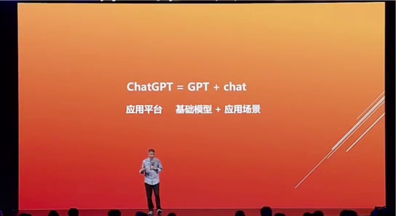 就像在上一个年代这个office一样,它不是一个应用,它是应用平台。但如果把GPT再拆一拆,刚才讲过了,它如果把它变成个基础模型的话,事实上chat就是一个应用。所以ChatGPT就是GPT加chat,这是我的理解。
