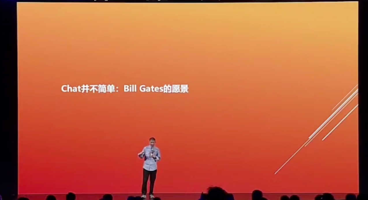 当然我今天讲的重点是这个+到底是什么?这个+就让我想到了,大家都知道当时这个chat做这件事情的时候,事实上只是反映了比尔-盖茨当年的一个愿景,就是让计算机能听能说。所以我想今天因为有了ChatGPT以后,就当这台计算机变成了一个手机以后,我们今天就做到了这一点。