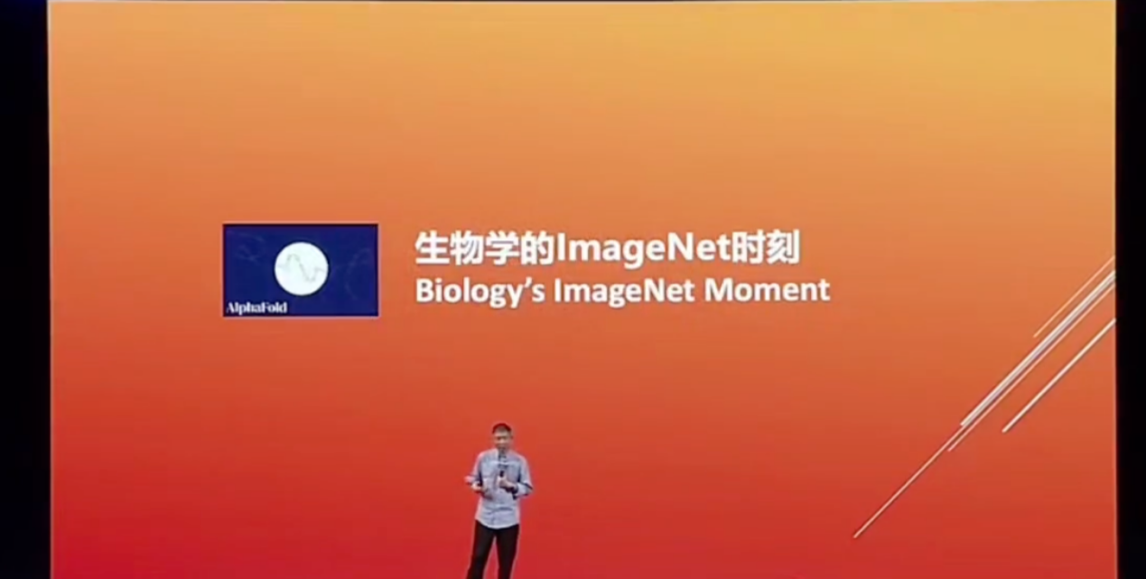 当然这句话,我自己觉得他其实抄袭了另外一句话。这是当年我自己听了看了非常激动的。就是当alphafold出来的时候,alphafold 2出来的时候,有人说了一句话,大家说是alphafold是生物学的imageNet时刻。我自己觉得这个是真正反映了技术发展的背后的。