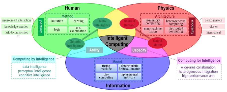 因此,在智能计算的理论体系中,人类的智慧是智能的源泉,计算机是人类智能的赋能。我们称计算机的智能为通用智能。