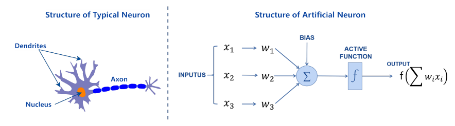 图6:典型神经元的结构和人工神经元的结构