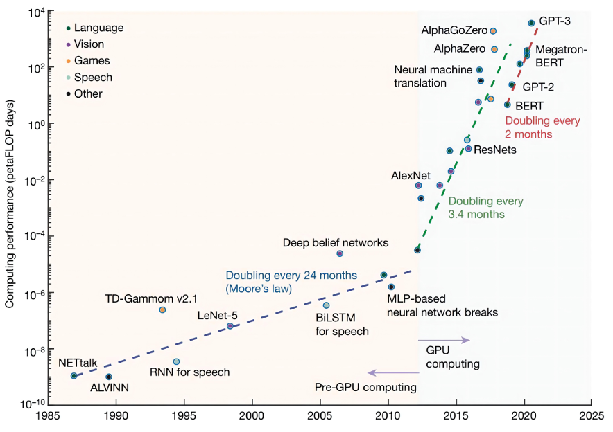 AI的发现不断涌现,这在很大程度上归功于不断增长的计算能力。AI的快速变化是由新思想或革命性理论推动的。通常,最新的先进模型仅依赖于更大的神经网络和更强大的处理系统。