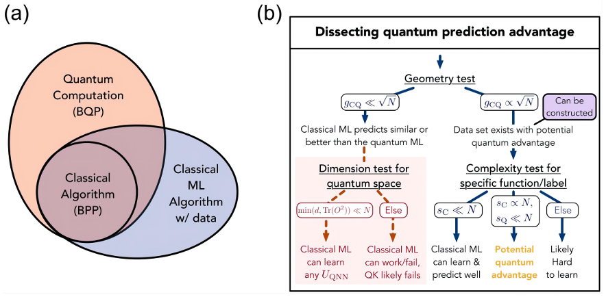 图13:显示复杂性等级之间关系的图表(a)以及用于识别和评估可能的量子优势的流程图(b)