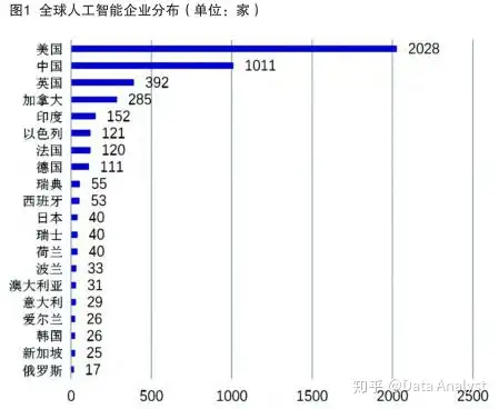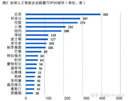 1. 企业规模 : 中国人工智能企业数量为全球第二,北京是全球人工智能企业最集中的城市。