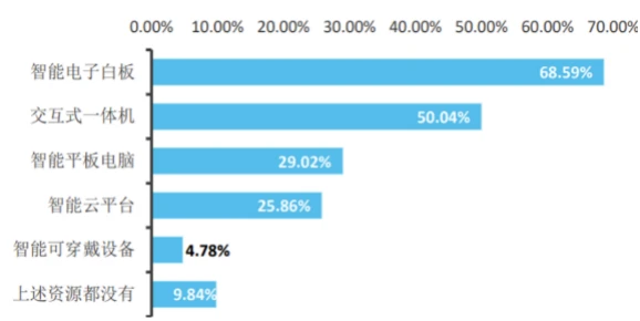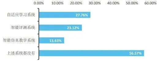 受访学校的信息化硬件设备总体情况较好,并配备了一定数量的智能设备,但是人工智能技术教育应用的相关软件系统还较为欠缺。