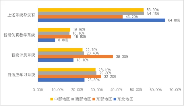 图15 不同地区学校在课堂教学中应用人工智能技术情况
