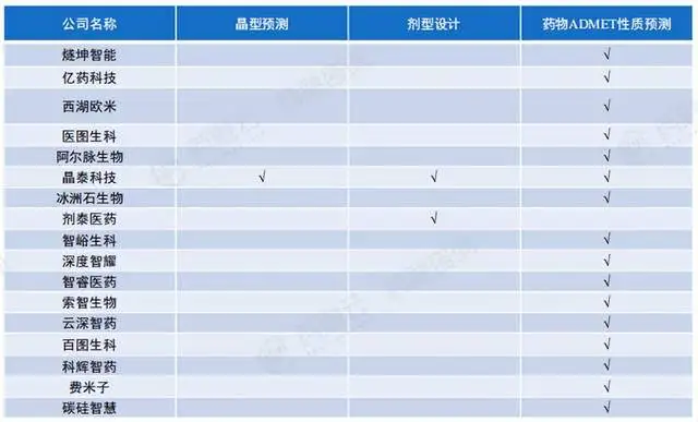 AI技术在药物临床前研发阶段有着广泛的应用。主要包括晶型预测、剂型设计和药物ADMET性质预测等,其中能够完成药物ADMET性质预测企业数量最多。 数字化转型网www.szhzxw.cn