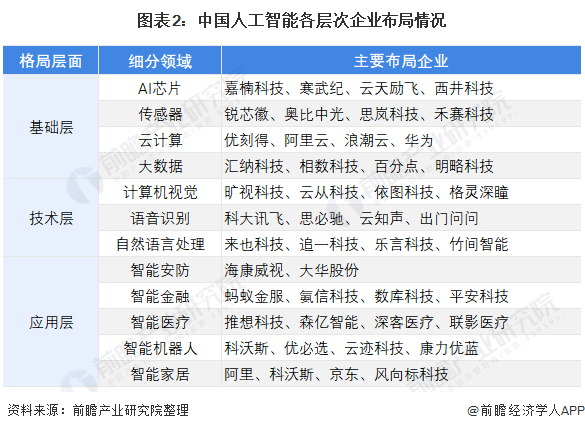 二、竞争格局:中国人工智能企业主要分布在应用层 占比超过80%