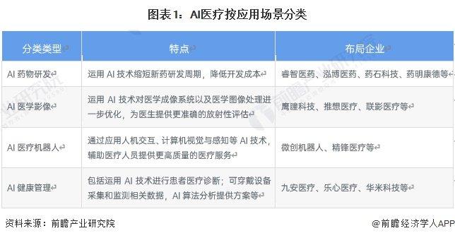 AI医疗是指运用先进的人工智能技术,包括机器学习、自然语音处理、深度学习等技术对药物开发、患者诊疗等环节进行智能化管理和升级,从而提高医疗服务的效率和质量。AI医疗根据AI赋能场景和应用场景的不同,可以分为AI药物研发、AI医学影像、AI医疗机器人、AI健康管理等。