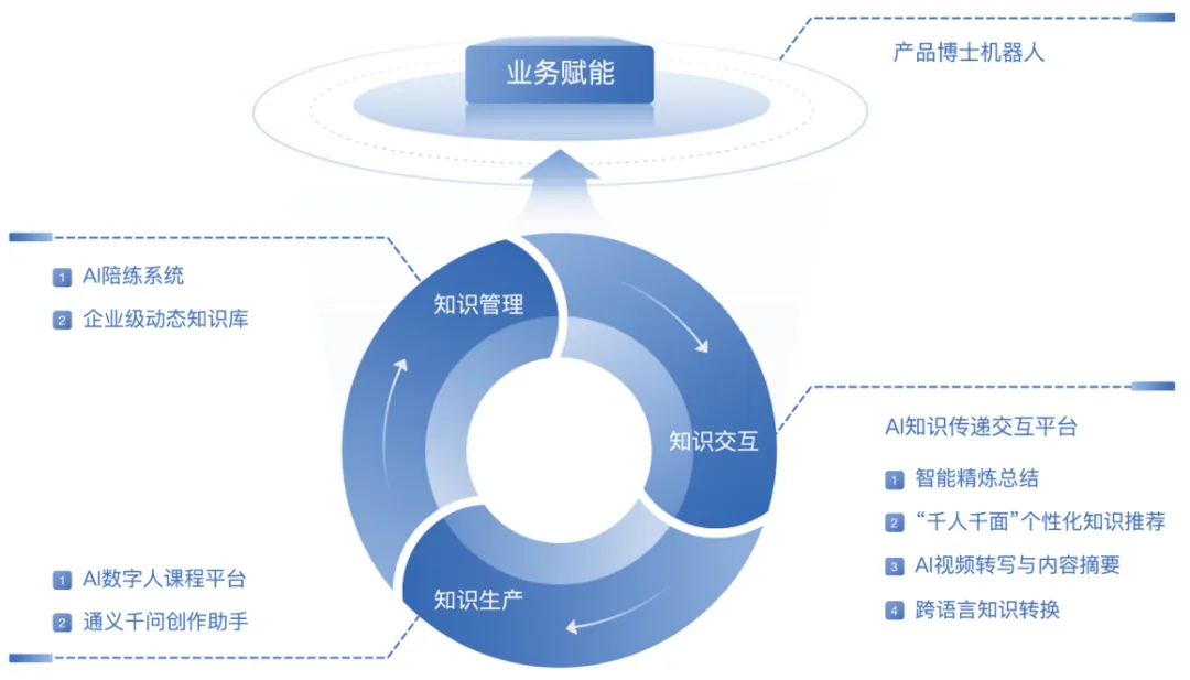 通过具体的AI能力建设,阿里云不断提升内部创作者的知识生产效率和质量,夯实企业级动态知识库管理,优化员工知识交互体验,进而创新业务赋能平台,助力组织与人才发展。