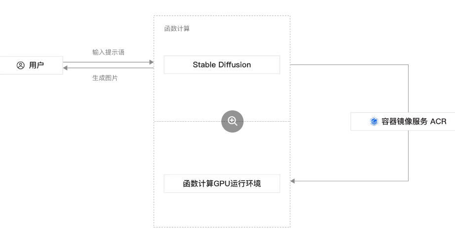 本方案通过函数计算FC提供的AI数字绘图模板创建应用,用户通过创建好的Stable Diffusion WebUI操作界面,输入想要生成的图片的描述词,应用就可以加载相应的模型,从而生成对应的图片。