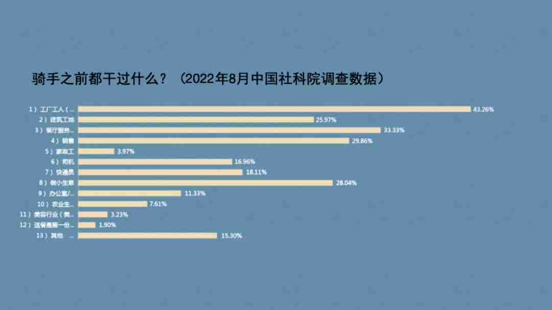 One of the most important is that most of the people who enter the odd job market are highly indebted. We have a survey that more than 60 percent of riders in Beijing, Shanghai and Shenzhen in 2022 are in debt, and more than 30 percent of riders have debts of more than 100,000 yuan.