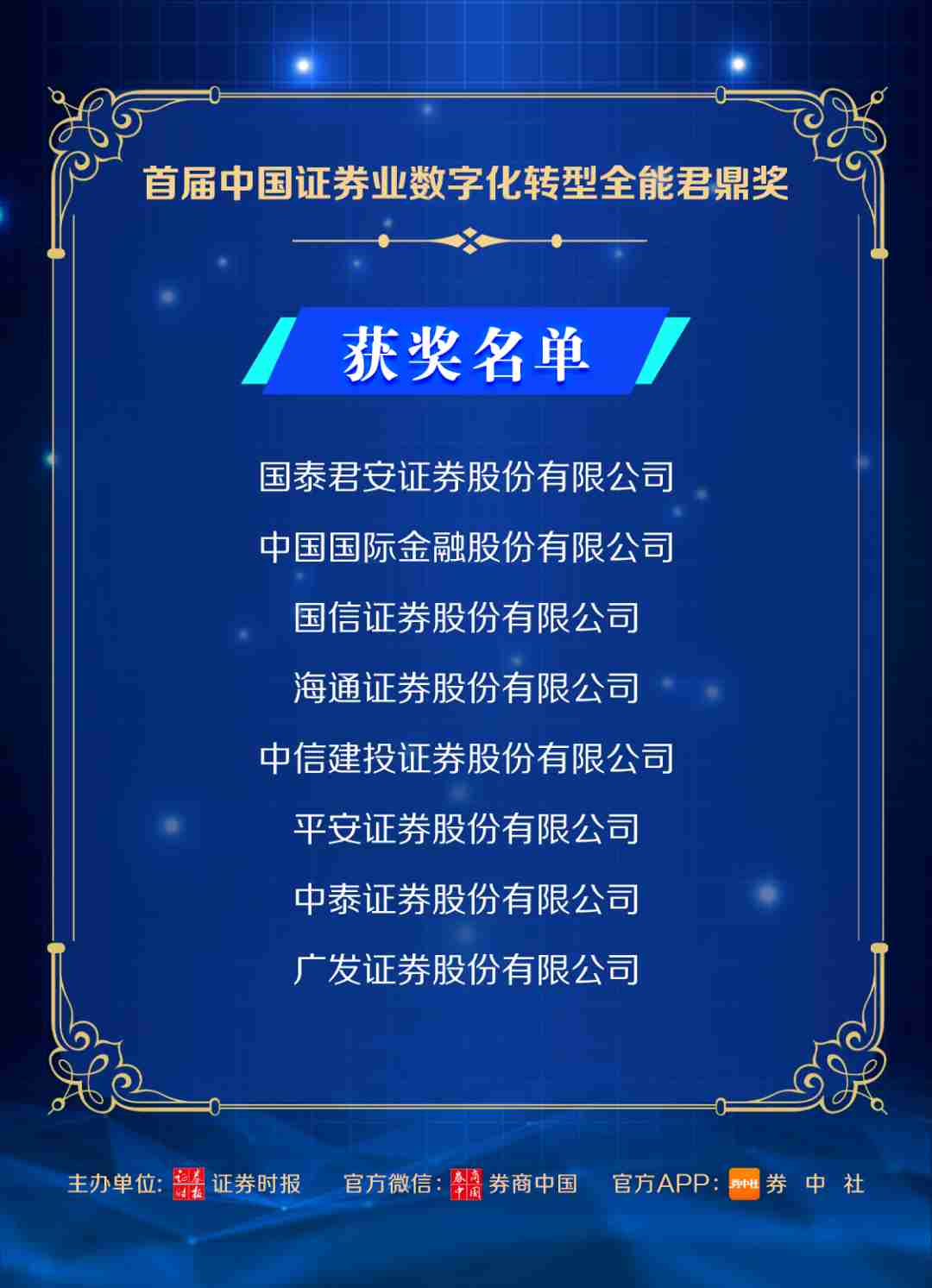 首届中国证券业数字化转型君鼎奖评选结果出炉!