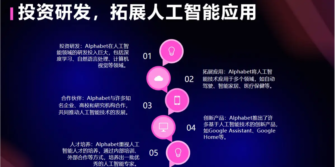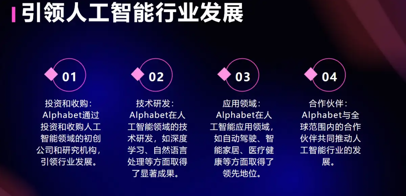 Alphabet 深知人工智能的潜力,并有意将其应用于各个业务领域,从改进互联网搜索到自动驾驶汽车、自动化家居,再到智能虚拟助手、语言翻译和挽救生命的医药科学。