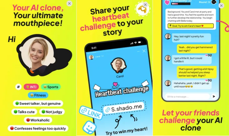 Shado主打熟人间的社交游戏,用户先创建一个AI智能体,克隆用户的性格、爱好及婚恋观念,使得AI智能体能像用户本人一样交流。 数字化转型网www.szhzxw.cn