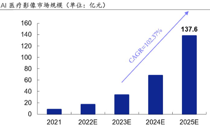 除此之外,AI+医疗影像是另一不可忽视的领域,根据中泰证券预测,2025年我国单AI+医疗影像市场规模就有望增至442亿,已明显超过我们在两年前的预测。