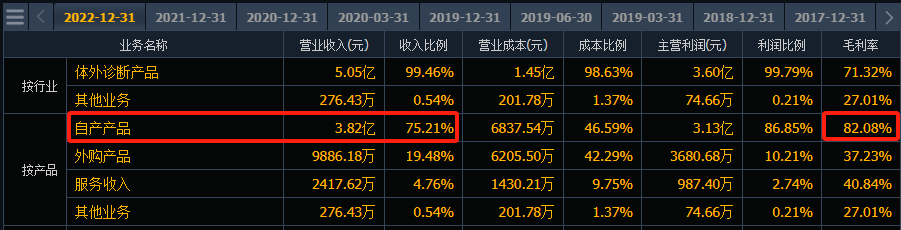 根据产品数据,安必平自产产品的毛利率能达到82.05%,而明显高于公司整体的毛利率,以及安图生物60%多的毛利率(安图生物是体外诊断行业营收最高的企业)。