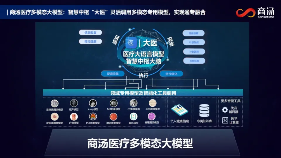 商汤以医疗大语言模型作为智慧医院建设“中枢大脑”,智能调度多模态专用模型。
