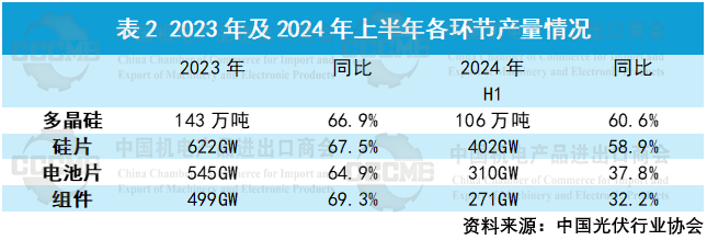 二、2024年上半年中国光伏产业链各环节进出口情况